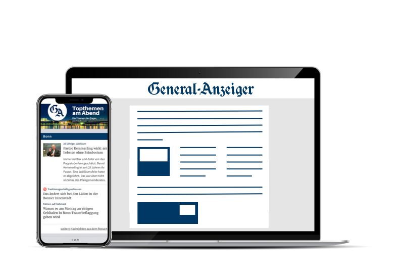 GA+ ist das digitale Abonnement des General-Anzeigers Bonn. Mit dem kostenpflichtigen Abo erhalten die Leser uneingeschränkt Zugriff auf alle digitalen Inhalte, ob auf der GA-Website am PC oder über die GA-News App auf dem Tablet oder dem Smartphone.