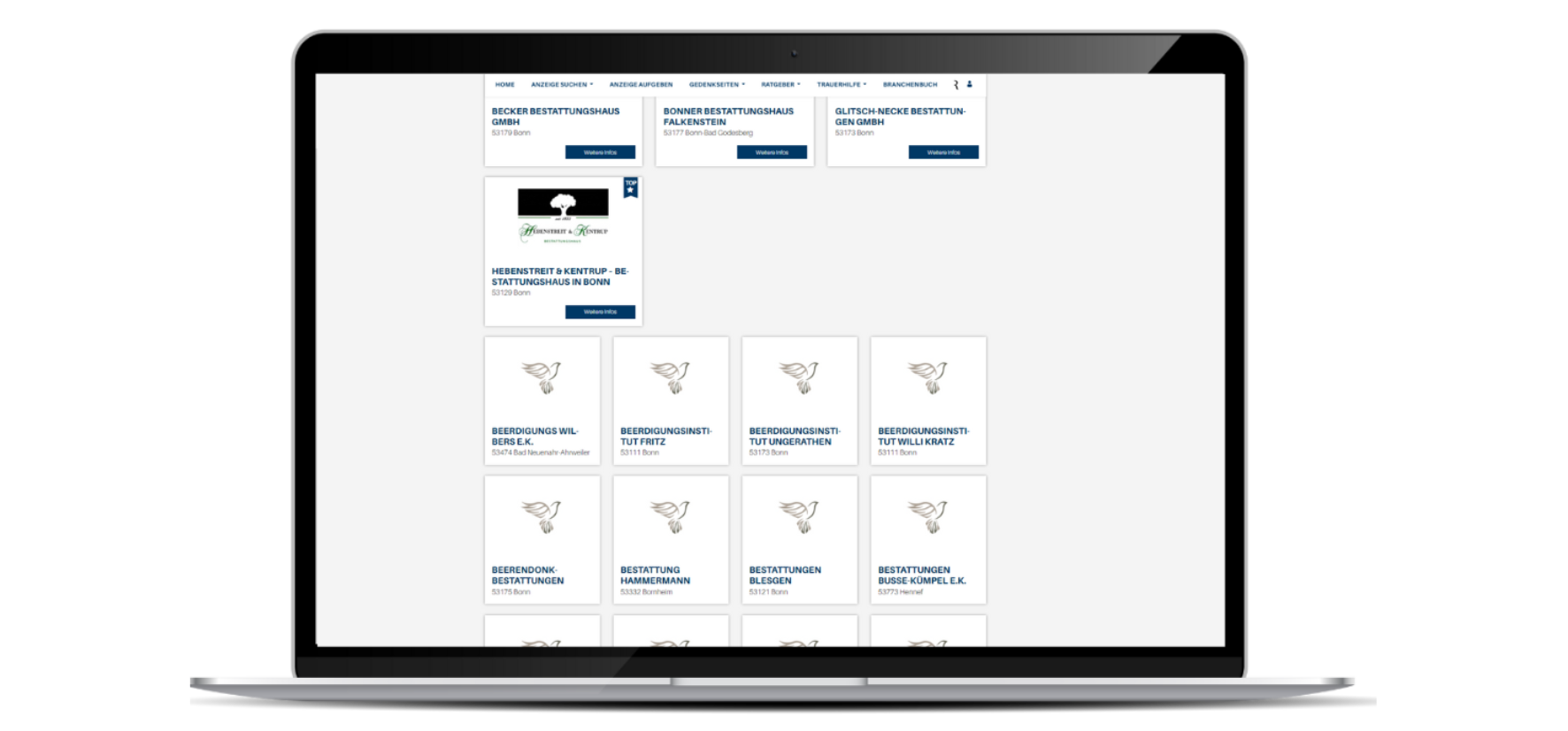 Geeignet für alle Dienstleister wie z.B. Bestattungsunternehmen, Friedhöfe, Steinmetze, Trauerredner, Versicherungen, Notare, Versicherungen, Druckerein, Musiker, Floristen, Rechtsanwälte oder Sarg- und Urnenhersteller.
