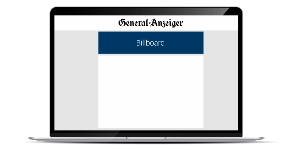 Das Billboard ist ein großes, präsentes Werbemittel, welches im direkten Sichtfeld des Users zu finden ist. Mit einer Größe von 970 x 250 Pixel eignet sich dieses Werbemittel optimal für Aktionen und Angebote, um punktuell mit großer Aufmerksamkeit zu werben.