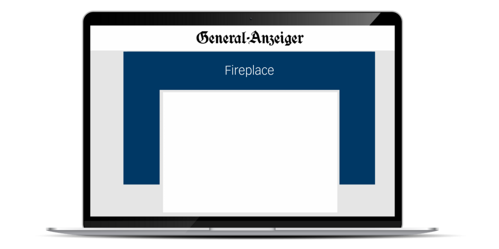 Das Bannerformat Fireplace ist ein sehr großes und aufmerksamkeitsstarkes Werbeformat. Es umschließt eine Website sowohl oberhalb, als auch auf der rechten und linken Seite. Es besteht aus den beiden Formaten Billboard (970 x 250 Pixel) und zwei Skyscrapern (200 x 600 Pixel). Dieses Format eignet sich besonders gut für Aktionen und Angebote, um punktuell mit großer Aufmerksamkeit zu werben.